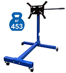 Стенд для сборки и разборки цилиндропоршневой группы 2-х и 4-х цилиндровых ДВС без навесного оборудования г/п. до 453 кг. Вращение двигателя 360°. 4 регулируемых кронштейна для удобства вывешивания и обслуживания ДВС легковых авто. оснащен Т - образной рамой с поперечной и 4-мя колесами.