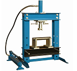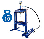 Настольный. Занимает мало места. Основные функции выполняет. Для гаража. Гидравлический, ручной, сборно-разборный. Гидроцилиндр с пуансоном имеет возможность перемещения по всей ширине рамы. Для запрессовки деталей механизмов. Усилие 10 тонн. Интервал пуансона 135 мм. Рабочее окно: 400 x 350 мм.