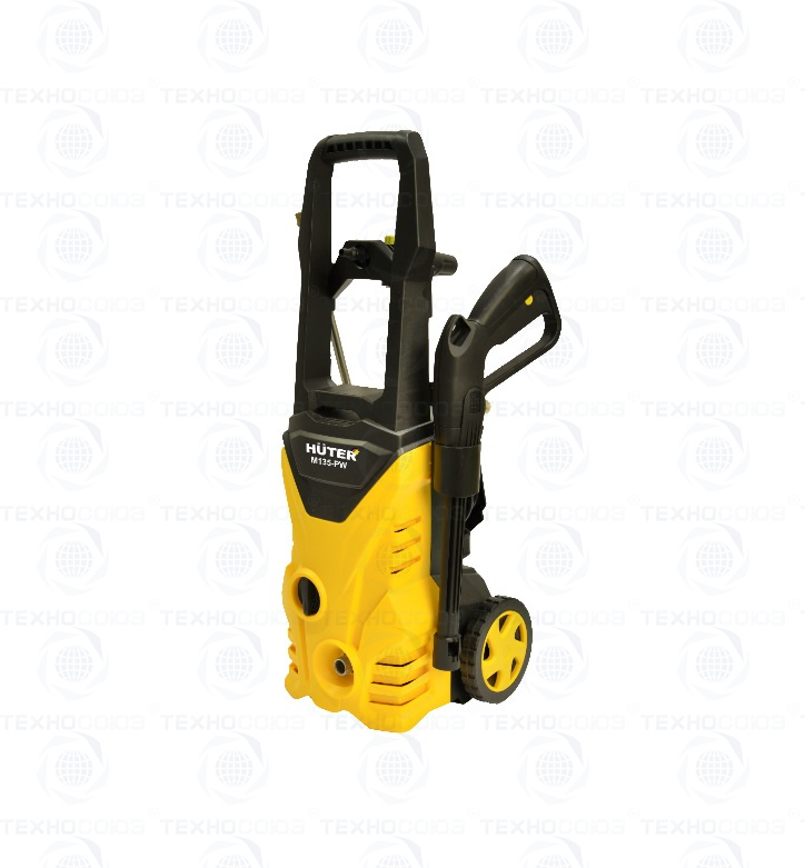 Мойка высокого давления Huter М135-PW имеет вертикальную компоновку. Благодаря небольшому весу и паре колес она весьма мобильна и легко перемещается по участку. Тем более что в наличии имеется удобная ручка. Устойчивость аппарата обеспечивается двумя опорными ножками. Комплектацией данной модели не предусмотрено наличие шланга подачи воды, зато в наличии имеется шланг высокого давления, пистолет-распылитель и струйная трубка. В перерывах между работой пистолет можно фиксировать в специальном держателе на ручке.