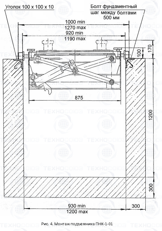 По отдельному заказу подъемник ПНК-1 может быть изготовлен для установки на канаву шириной от 930 до 1100 мм (с обязательным приложением к заказу поперечного разреза канавы). Конструкция основания подъемника ПНК-1-01 предусматривает возможность регулировки в целях установки на канаве шириной от 930 до 1200 мм.
