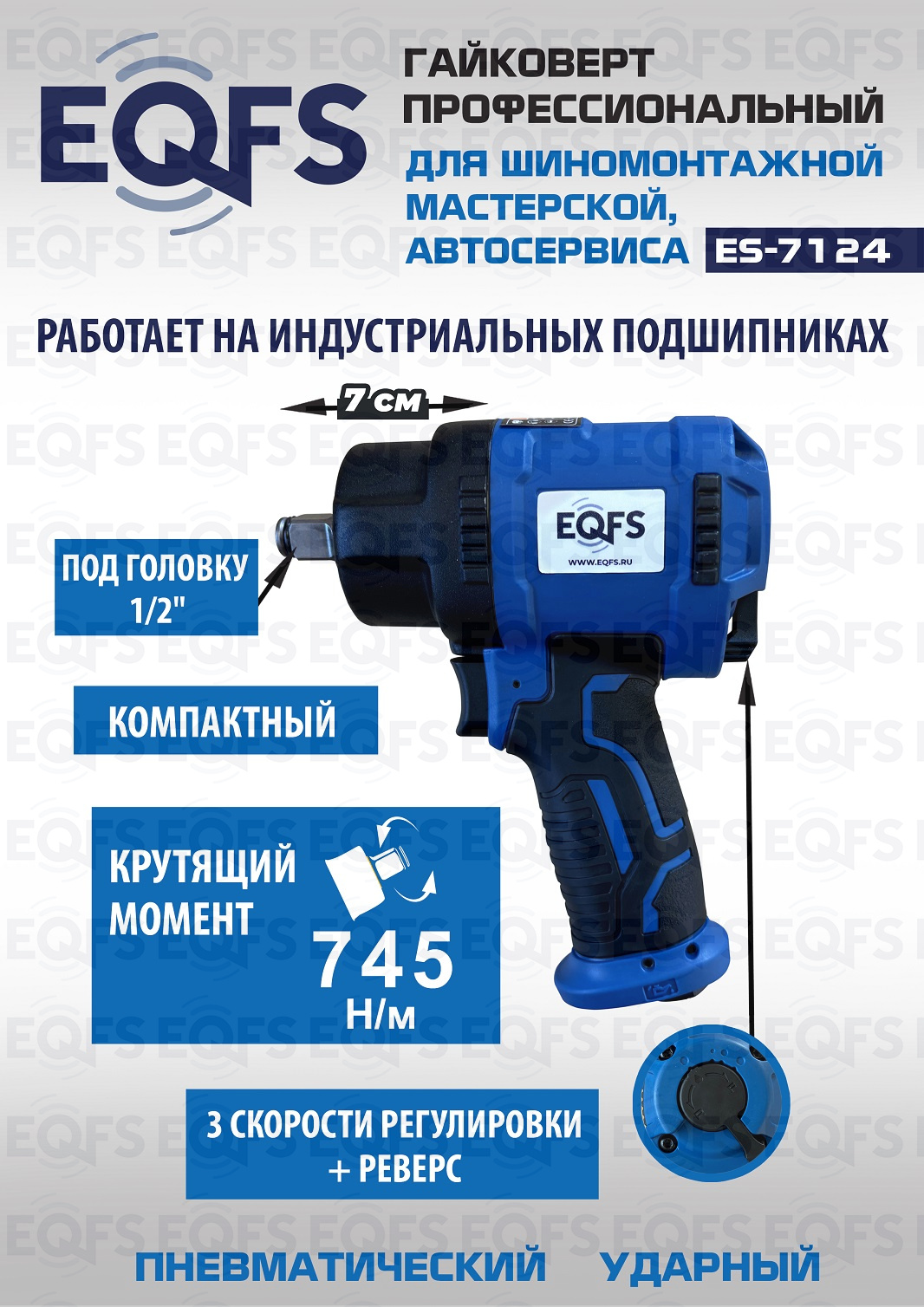 Преимущества ES-7124 Пневмогайковерт 1/2" короткий: