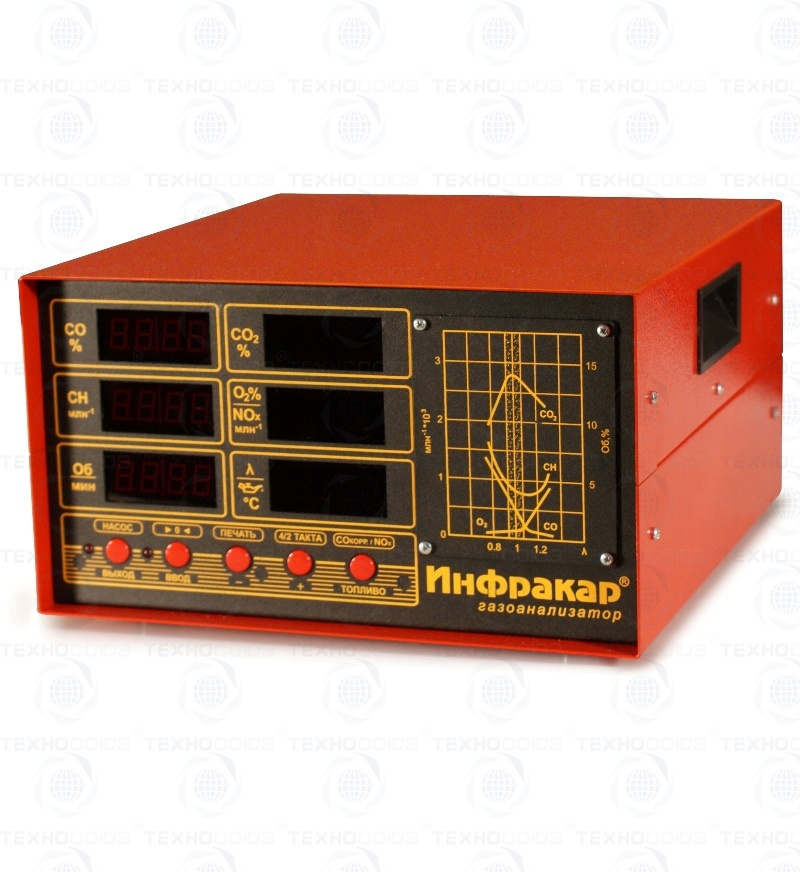 Автомобильный 5-ти компонентный газоанализатор «Инфракар 5М-3Т.01 предназначен для измерения объемной доли оксида углерода (СО), углеводородов (CН) (в пересчете на гексан), диоксида углерода (СО2), кислорода (О2), окислы азота(NOx) в отработавших газах автомобилей с бензиновыми двигателями. Лямбда + Тахометр + Температура масла + RS-232 + Автослив конденсата + Автоподстройка нуля + Работа с ЛТК и мотортестерами. Внесен в Госреестре средств измерений РФ, Республики Беларусь и Казахстан.