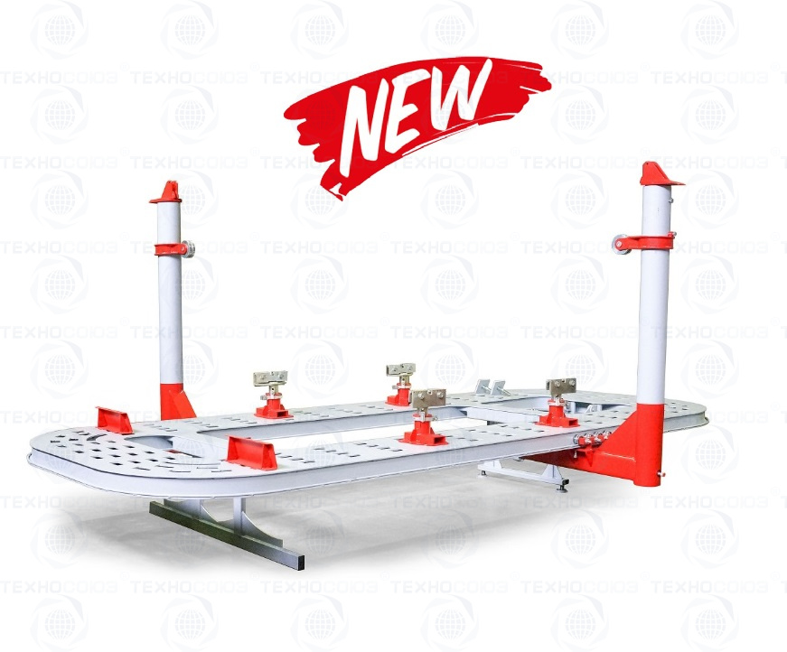 Силовые башни оборудованы мощной и надежной гидравликой, управляемой пневмогидравлическими педалями и оснащенные роликами расположены непосредственно на платформе. Башни без лишних усилий передвигаются вдоль периметра стенда по рельсовым направляющим и фиксируются в любой точке, в том числе на углах стапеля. Комплект из фиксирующих зажимов быстро и надежно фиксирует практически любой автомобиль. Комплект инструмента и аксессуаров, входящие в поставку обеспечивает возможность проведения всех видов работ.