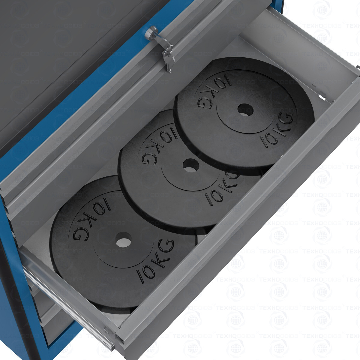 корпус - RAL5015, ящики - RAL7037, ручки ящиков - RAL9006