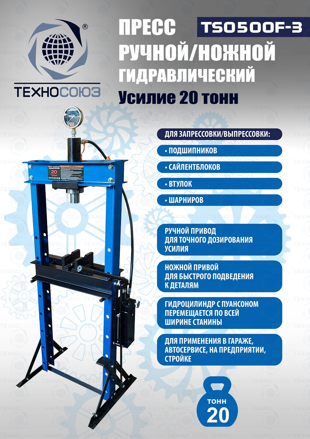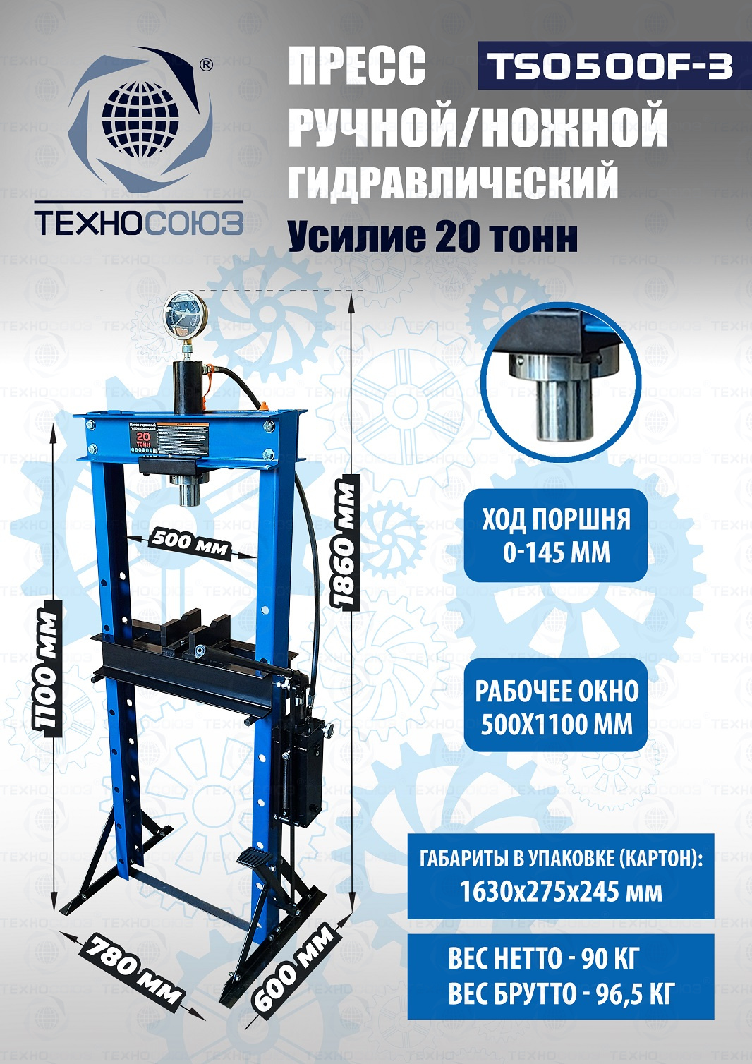 TS0500F-3 Пресс гидравлический ручной/ножной, 20 тонн