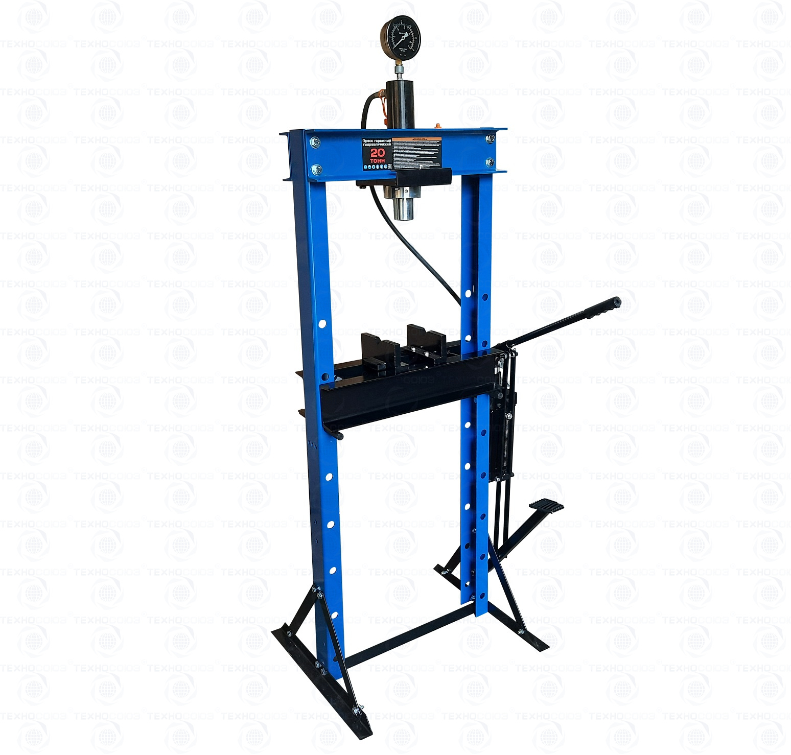 Пресс гидравлический ручной укомплектован насосом с одной плунжерной парой и максимальным усилием 20т.