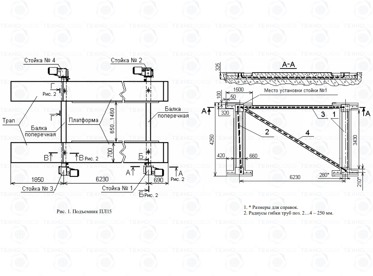 Описание конструкции подъемника платформенного четырехстоечного ПЛ-15: